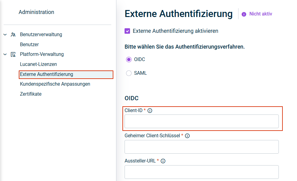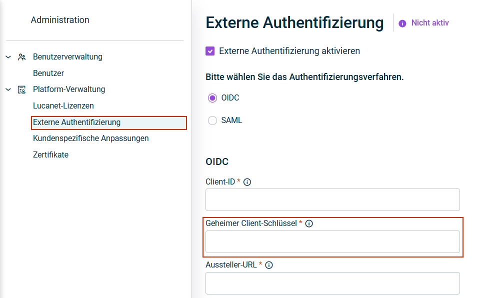 Feld 'Geheimer Client-Schlüssel' in Lucanet