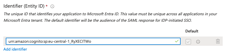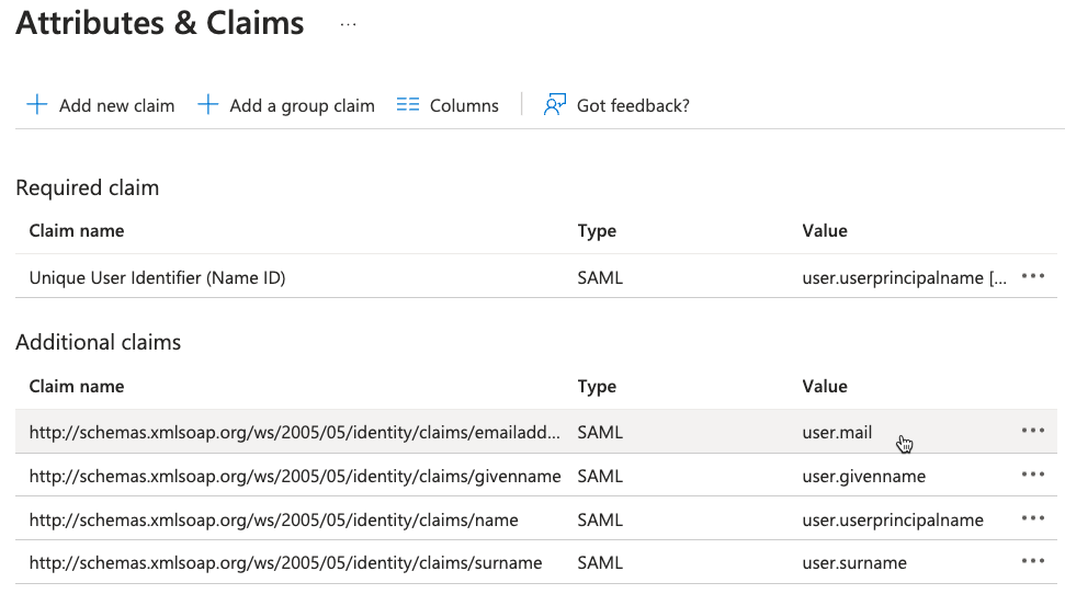 - Attribute: http://schemas.xmlsoap.org/ws/2005/05/identity/claims/emailaddress