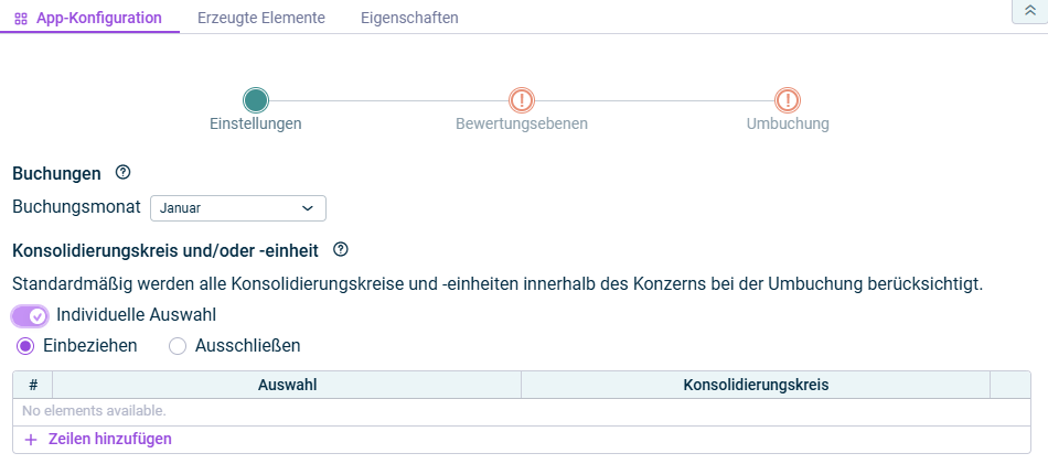 Wählen Sie in der Tabelle einzelne Konsolidierungseinheiten, die berücksichtigt werden sollen. - Ausschließen