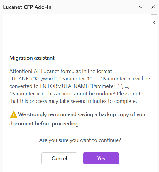 - Wenn die Konvertierung fehlgeschlagen ist, listet der Migrationsassistent die Zellen auf, die den Fehler verursacht haben. Gehen Sie in diesem Fall zu der aufgeführten Zelle, korrigieren Sie die Formel und führen Sie die Konvertierung mit dem Befehl Erneut versuchen erneut durch.