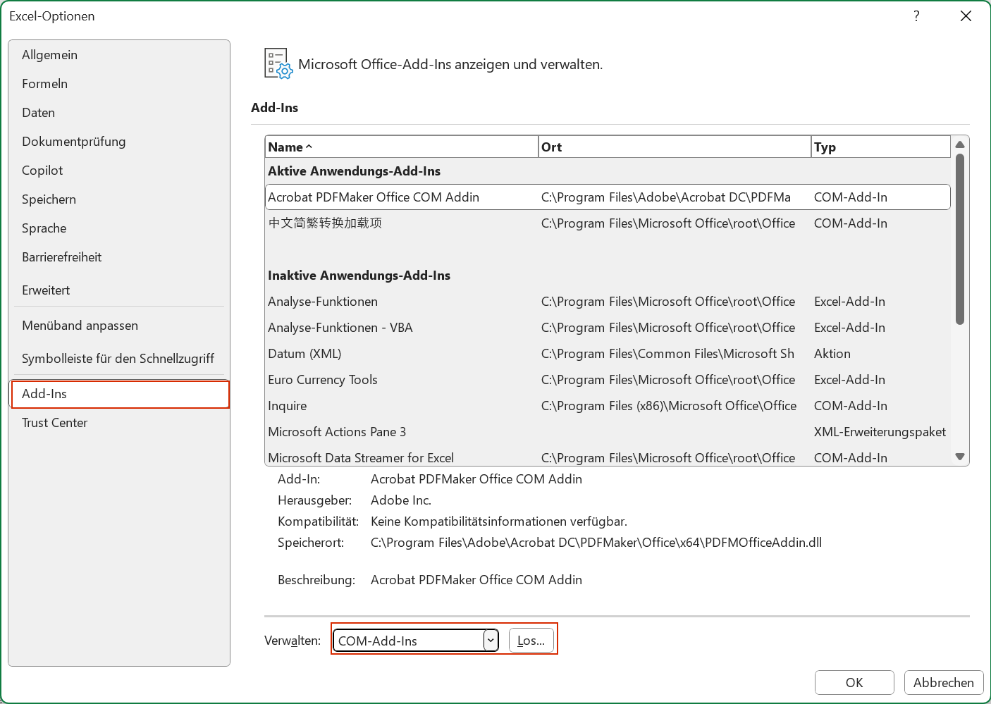 Durch das Deaktivieren des COM-Add-Ins wird dieses nicht von Ihrem System gelöscht – es wird lediglich verhindert, dass es beim Start von Excel geladen wird. Sie können es bei Bedarf später wieder aktivieren, indem Sie die gleichen Schritte ausführen und das Kontrollkästchen erneut aktivieren.