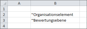 Im Excel-Arbeitsblatt ist für den Abruf von Organisationselement und Bewertungsebene jeweils eine Tilde-Formel mit Platzhalter definiert: