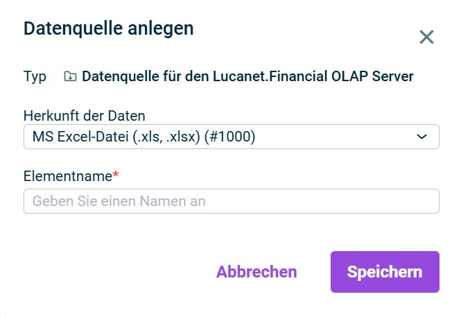 Geben Sie im Feld Elementname den Namen der Datenquelle an.