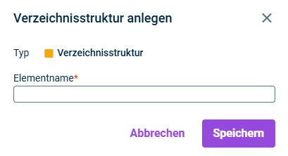 Verzeichnisstrukturen können nur unterhalb des Wurzelordners oder eines Ordners angelegt werden. Das Anlegen unterhalb anderer Elementtypen ist nicht möglich.