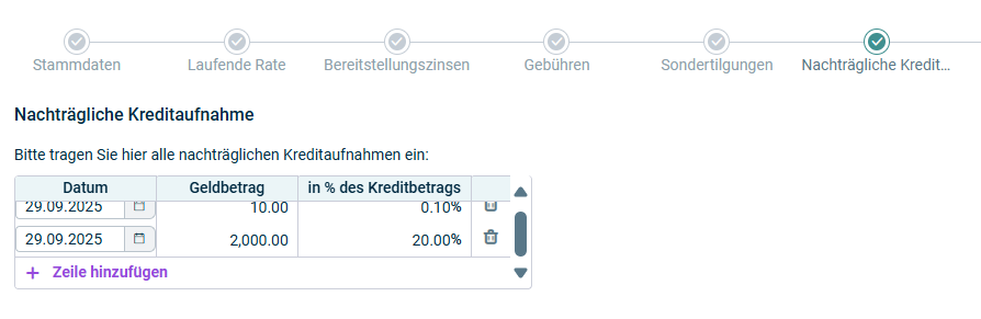 - Nachträgliche Kreditaufnahmen – Erhöhung des Kreditbetrags während der Laufzeit
