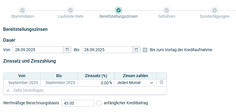- Fügen Sie ggf. weitere Zeilen hinzu, wenn der Zinssatz für einen oder mehrere Zeitabschnitte des Zahlungszeitraums abweichend sein soll.