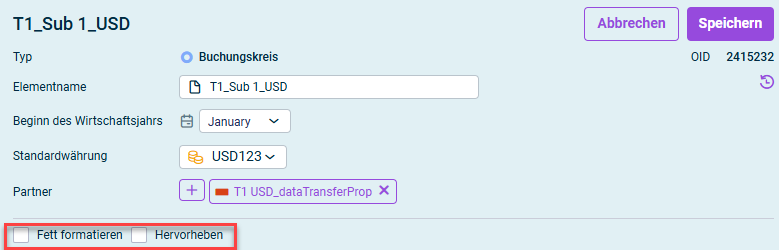 Navigieren Sie dazu zur Detailansicht des gewünschten Elements, öffnen Sie den Bearbeitungsmodus und aktivieren Sie das Kontrollkästchen Fett formatieren und/oder Hervorheben.