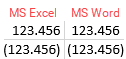 Im folgenden Beispiel werden in MS Excel negative Zahlen in Klammern geschrieben, wodurch die Zahlen nicht mehr untereinander stehen (linke Spalte). Mit dem Einfügen eines Double Tabs in MS Excel sind die Zahlen untereinander ausgerichtet (rechte Spalte):