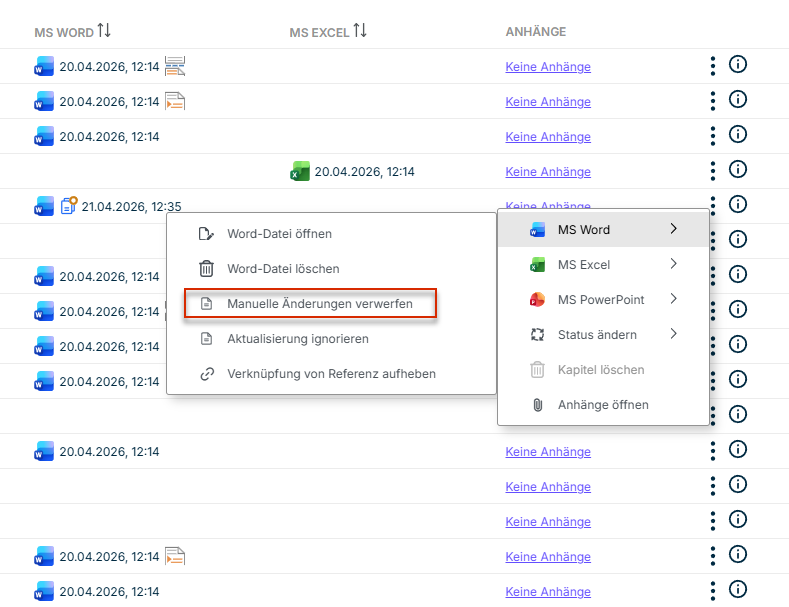 - Im Cockpit wird in der Spalte MS Word ein zusätzliches Symbol für eine Referenz angezeigt: