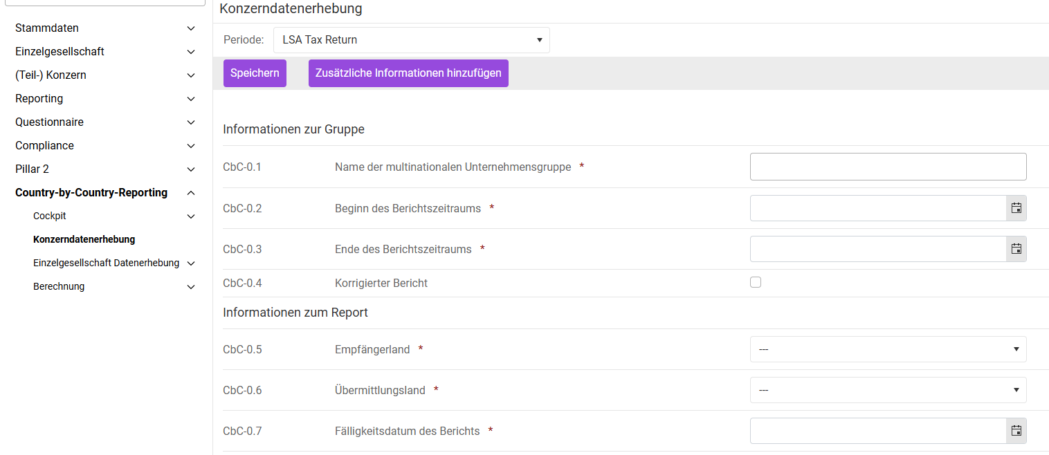 Das Sub-Modul Country-by-Country-Reporting (CbCR) ermöglicht die automatisierte Erfassung, Validierung und Berichterstattung von länderspezifischen Daten gemäß den OECD-Richtlinien und lokalen Vorschriften. Das CbCR-Sub-Modul umfasst Funktionen für die Datenintegration und Prüfungs-Workflows und bietet ausgabebereite Berichte. Dadurch werden ein umfassender Überblick über globale Steuerverpflichtungen sowie eine verbesserte Compliance, ein reduzierter manueller Aufwand und eine gesteigerte Prüfungsbereitschaft ermöglicht.