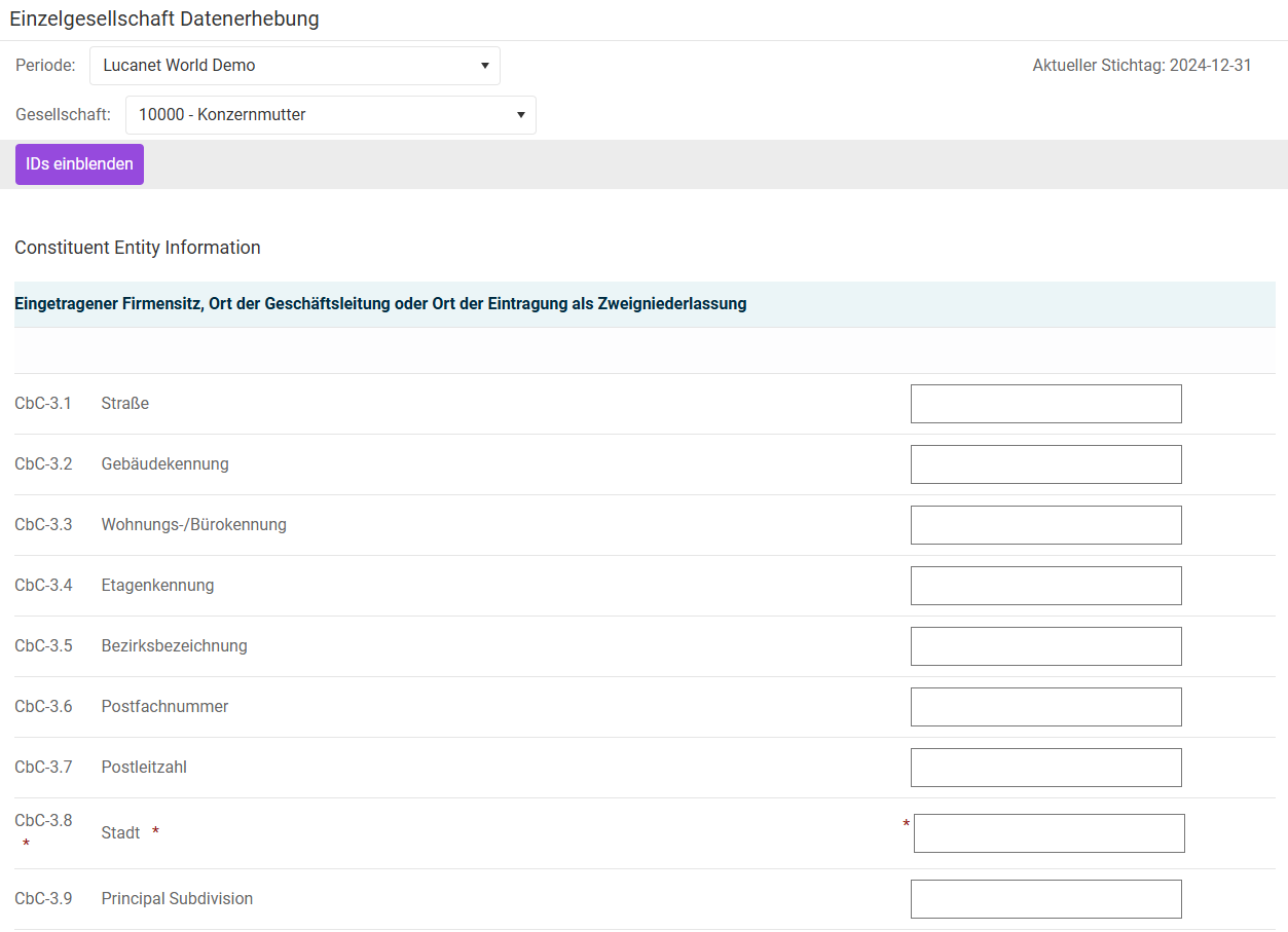Ein Benutzer mit den notwendigen Rechten muss das Kontrollkästchen CbC-3.13 aktivieren, um zu bestätigen, dass die Daten in diesem Arbeitsbereich aktualisiert und überprüft wurden.