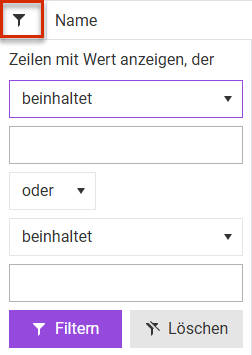 - Klicken Sie dafür auf das Filter-Symbol in der Überschrift der jeweiligen Spalte. Der folgende Dialog wird angezeigt: