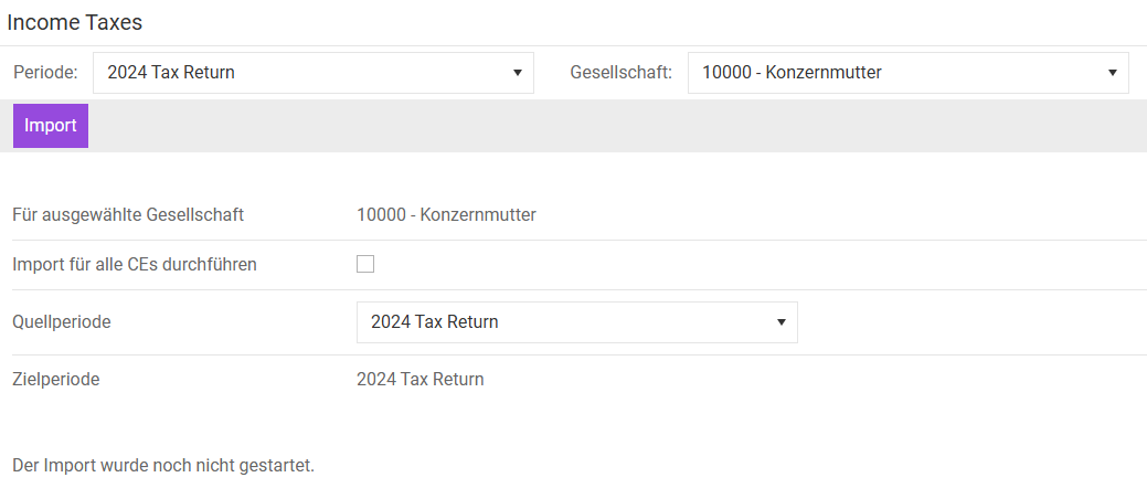 Statt eine einzelne Zielgesellschaft zu wählen, können Sie auch das Kontrollkästchen aktivieren, um den Import für all CEs (alle Gesellschaften) durchzuführen.