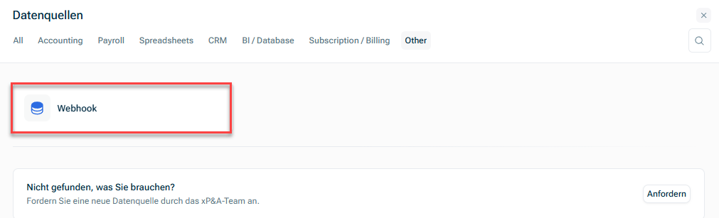 So erstellen Sie eine Webhook-Datenquelle in xP&A:
