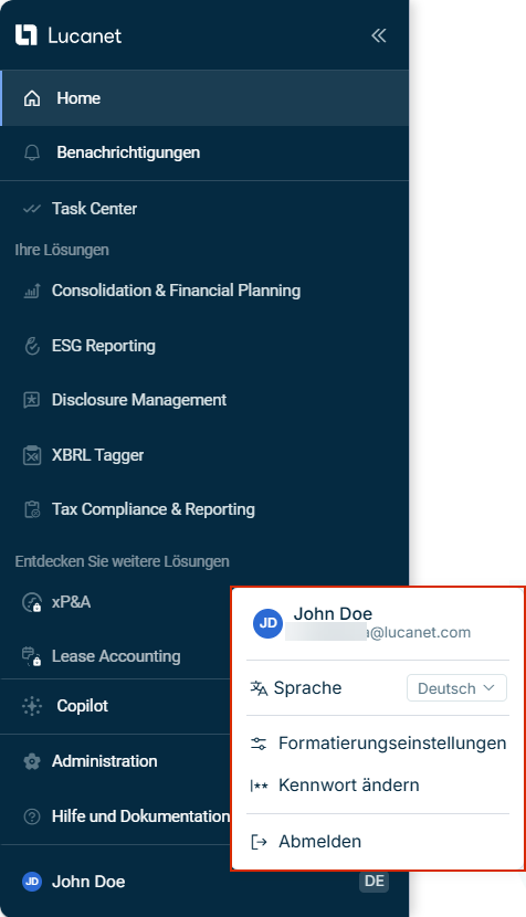 Weitere Informationen finden Sie unter Benutzer für die Lucanet CFO Solution Platform anlegen und bearbeiten.