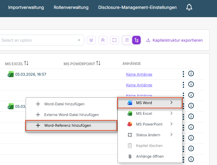 An alle Kapitel eines Disclosure Management-Dokuments können jetzt Zusatzinformationen in Form von Anhängen eingefügt werden. Diese Funktionalität ermöglicht es Ihnen, wichtige Zusatzdokumente direkt mit Ihren Berichten zu verknüpfen und so alle relevanten Informationen an einem Ort zu sammeln.