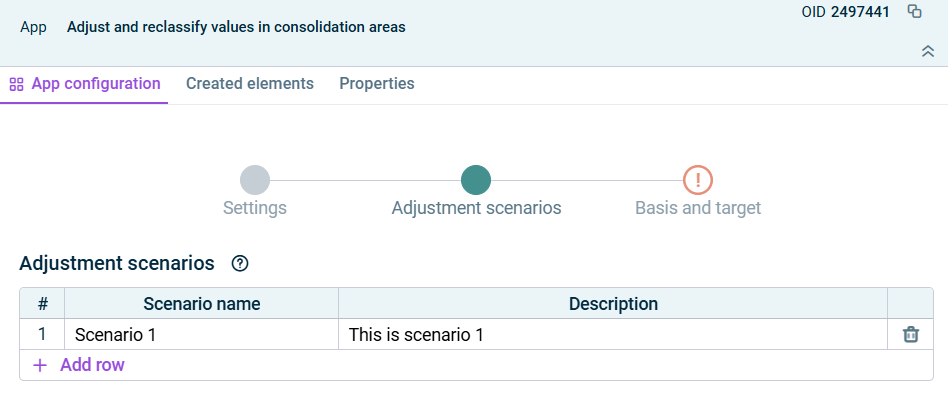 In the Adjustment scenarios step, create the required adjustment scenarios.