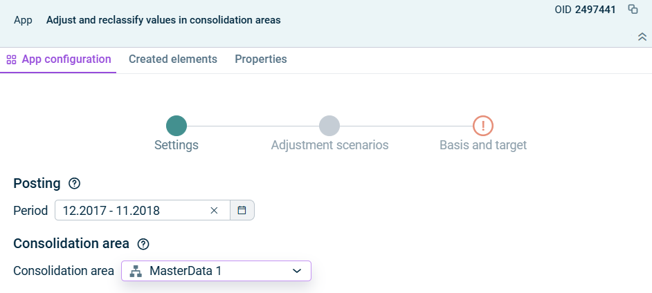 Configuring the App 'Adjust and Reclassify Values in Consolidation Areas'