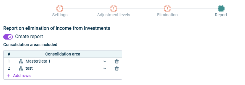The report can only be created for consolidation areas that were included in the Settings step for the app execution.