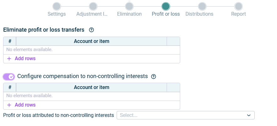 The Profit or loss step is only displayed if you chose Profit or loss transfers as elimination option in the Settings step: