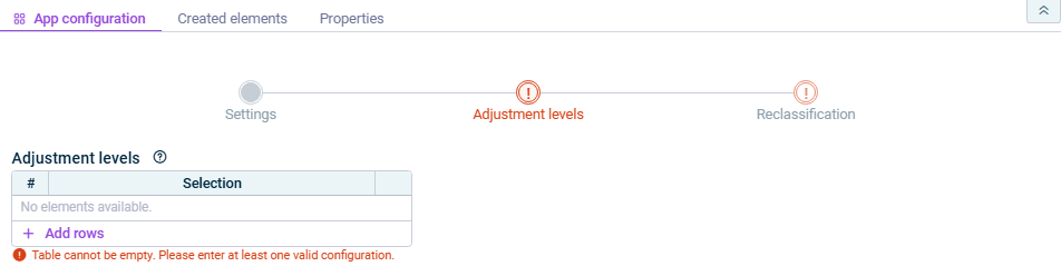 - As long as a step has not been fully configured and/or configuration errors exist, it is displayed with a red exclamation mark