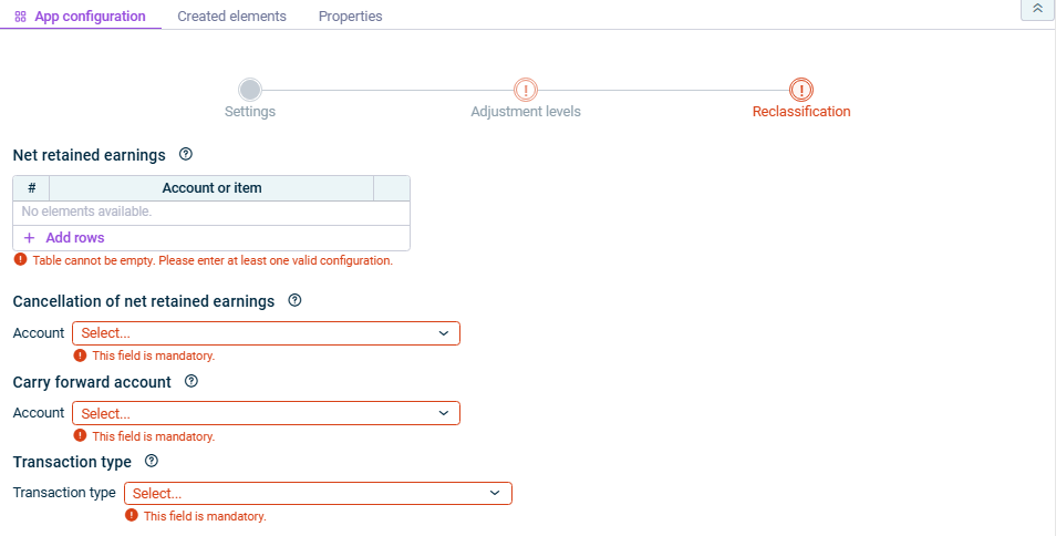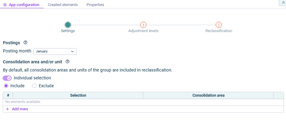 You can execute the app for the reclassification of profit or loss from previous year in consolidation areas either separately, together with other apps in an executable folder or as part of consolidated financial statements.
