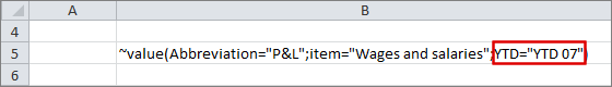 In the following example, the values for the Wages and salaries item are queried for the period between July 2017 (= "YTD 07") and the period currently specified for the report (e.g. November 2017).