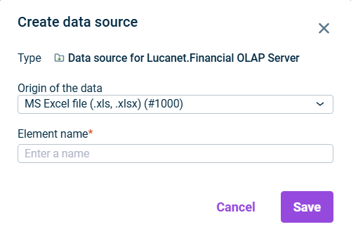 Choose the desired data source type from the Origin of the data drop-down list (see Available Data Source Types).