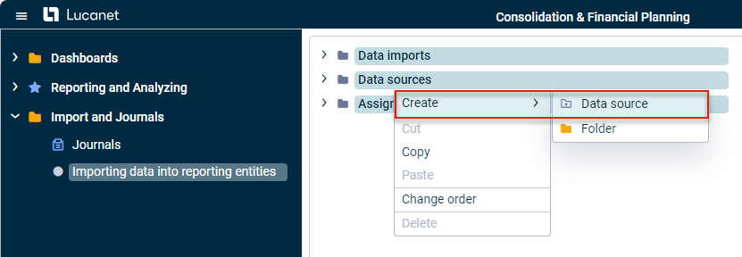 To import data from various sources into the current Lucanet database, a data source must first be created. Depending on the origin of the data, different data source types are available.