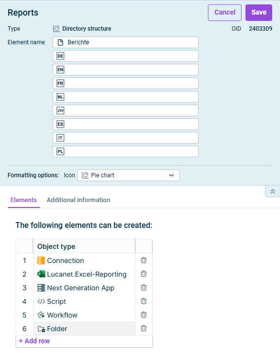 Customers who have already used directory structures in Lucanet.Financial Client, can view and edit all directory structures created there in the CFO Solution Platform.