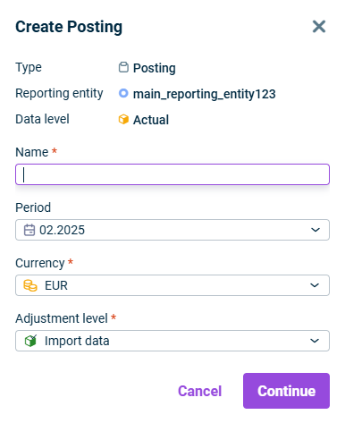 - Right-click on the cell for which you want to create a posting and and choose Create | Posting from the context menu.