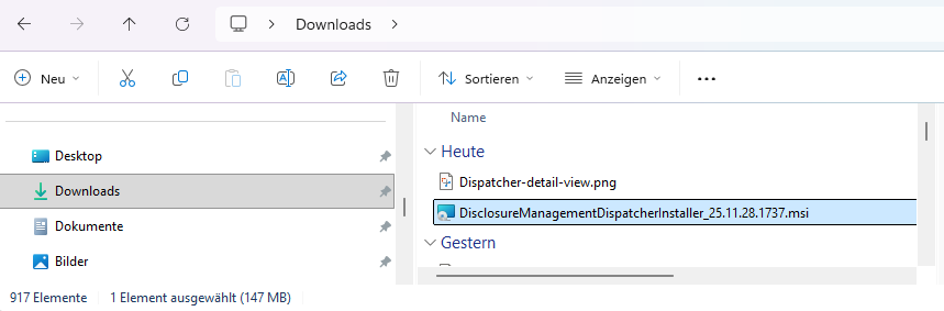 Download the MSI file for the Dispatcher and navigate to your Downloads folder.