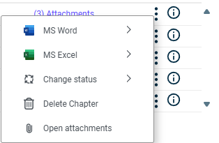 Opens the Attachments section, where you can manage attachments for the current chapter.