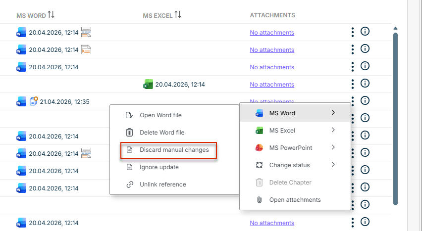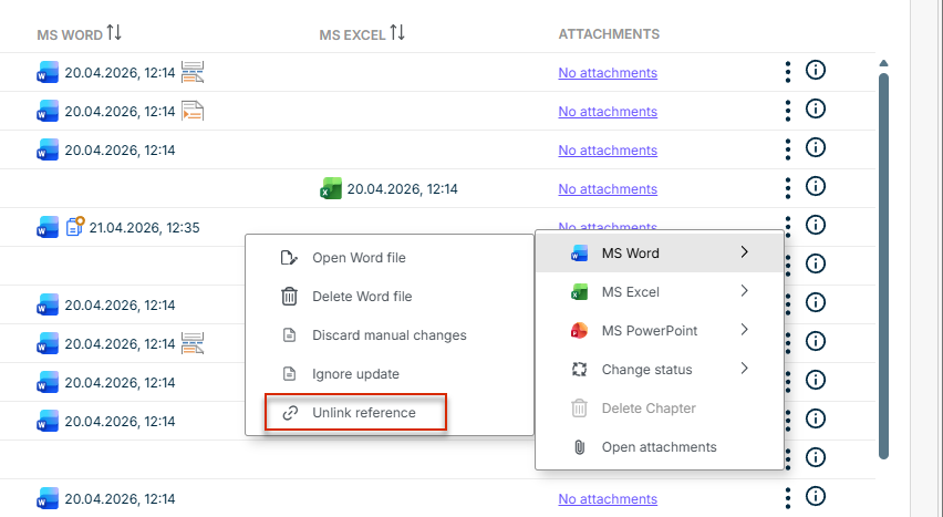 - In the Cockpit, an additional icon for a reference is displayed in the MS Word column: