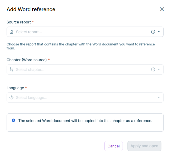 You can create a Word reference in the Cockpit via the three-dot icon of an empty chapter.