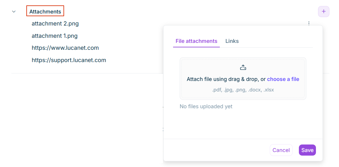You can also add file attachments and links when creating a task by switching to the File attachments or Links tab. For details on adding and managing attachments and links, see Attachments.