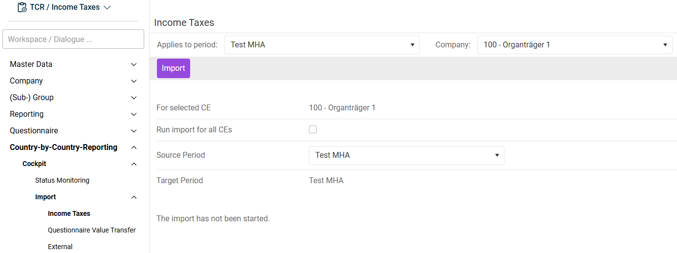 To import data from the Income Taxes module into the Country-by-Country Reporting sub-module:
