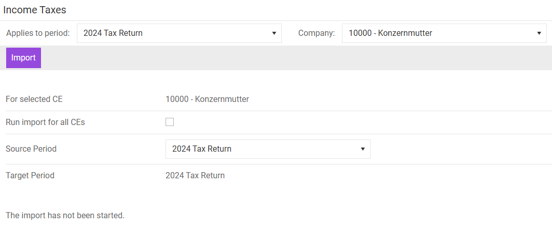 The Pillar 2 module includes a variety of options for the import of entity data, both from internal sources, and from external sources such as SAP or Excel files. In addition, it is possible to import allocations, such as tax allocations, FTE & PE allocations, or cross-border adjustments.
