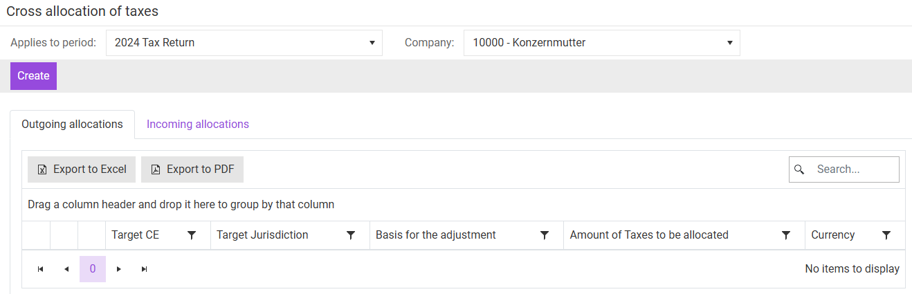 The Tax Allocations workspace is used to allocate tax expenses of controlled foreign corporations (CFCs) and taxes on distributions from a source constituent entity (CE) to a target CE.