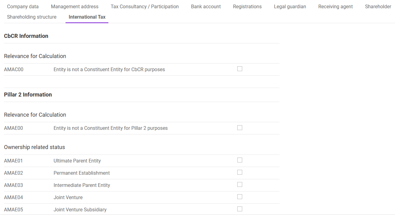 Customers who have used other Tax Compliance & Reporting modules in the past or who for other reasons already have the relevant data on their companies in Tax Compliance & Reporting may want to simply add additional CEs manually at Master Data | Companies.