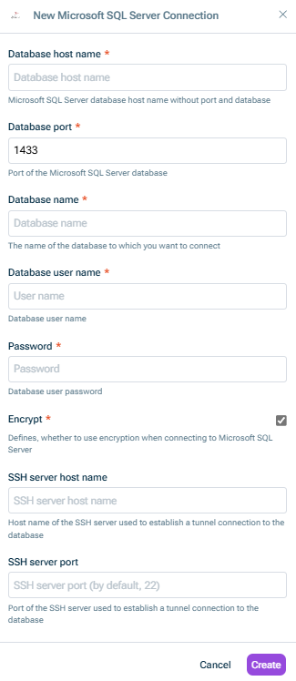 - Whether to use encryption when connecting to Microsoft SQL Server