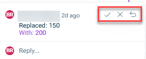 You can then choose to approve or reject the proposed change using the arrow or X. If needed, you can enter a reply to the Data collector to explain your decision or ask a question.