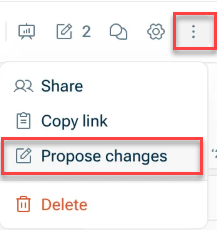 The Propose changes feature enables collaborative model updates through a structured review workflow.