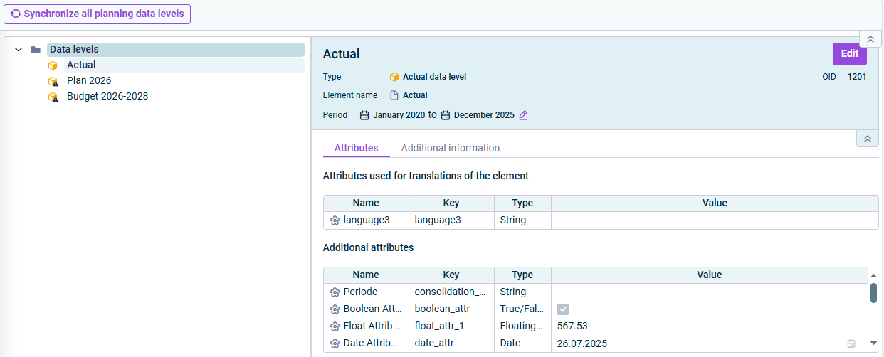 Another feature that streamlines the configuration workflow in the Lucanet CFO Solution Platforn is the value management of attributes. You can now define and edit the values of both language and non-language attributes that have been created in Lucanet.Financial Client for items, accounts, data levels, or adjustment levels in the CFO Solution Platform.